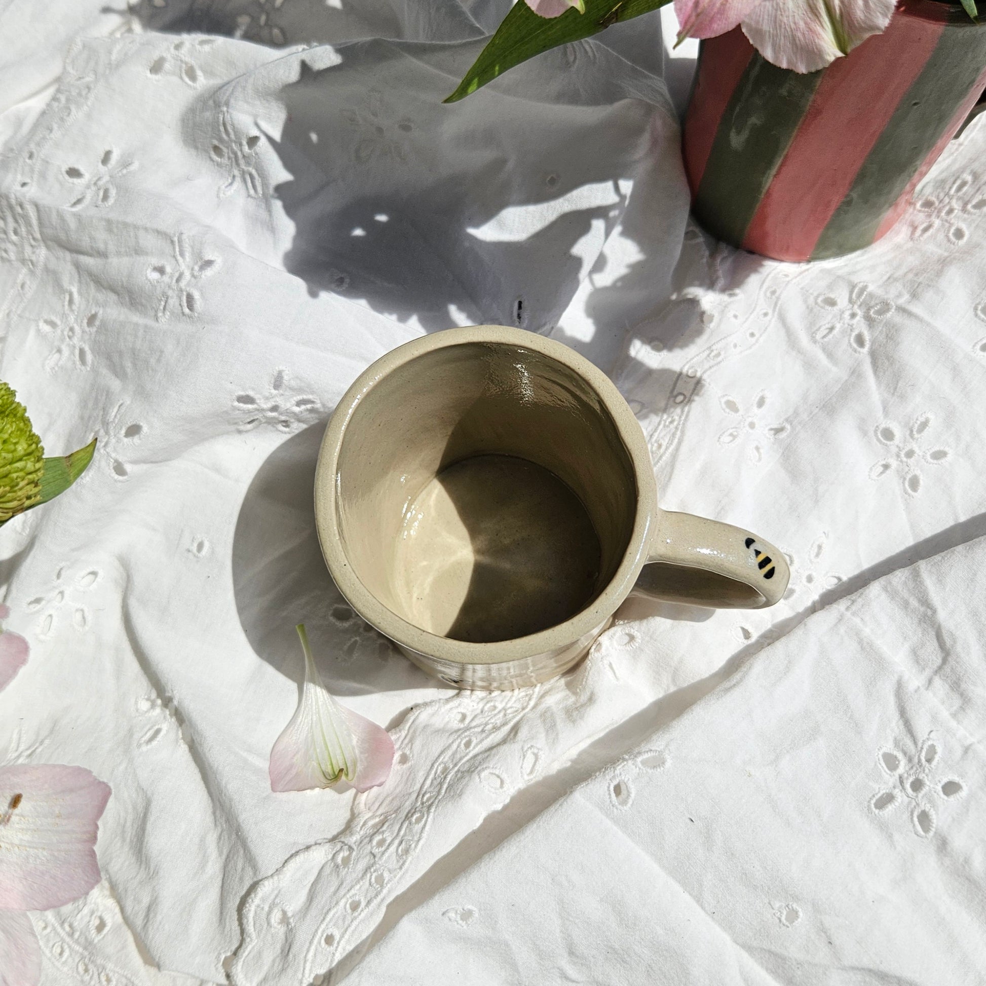 Die Tasse aus der Bienenkollektion hat eine klassische Tassengröße mit verspieltem Bienenmotiv. Sowohl für Heiß- , als auch für Kaltgetränke super geeignet, da Keramik die Temperatur lange halten kann. "Heißer" Tipp: Im Sommer Kaltgetränke mit oder ohne Eiswürfel aus der Tasse genießen. Durch das Material, wärmt das Getränk deutlich langsamer auf, als bei einem Glas oder einer Plastikflasche.